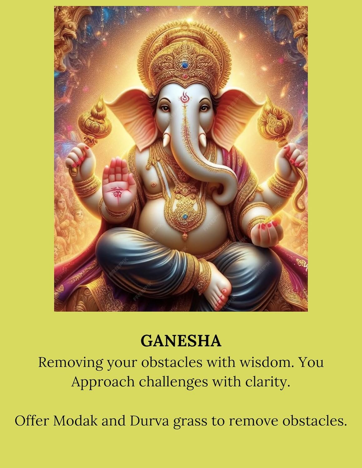 - Various gods and godesses Offers you spiritual guidance, wisdom, and teachings Life Situations : Addresses specific life challenges and situations. Blessings and Gifts : Reveals positive energies, opportunities, and blessings. Action Cards : Provides guidance on actions to take.